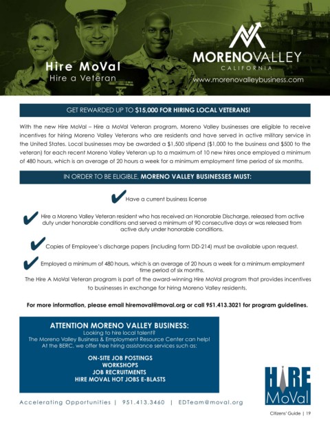 With the new Hire MoVal – Hire a MoVal Veteran program, Moreno Valley businesses are eligible to receive
