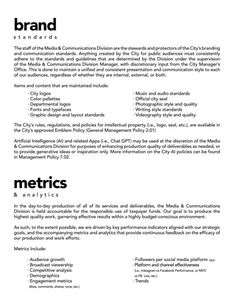 and communication standards. Anything created by the City for public audiences must consistently
