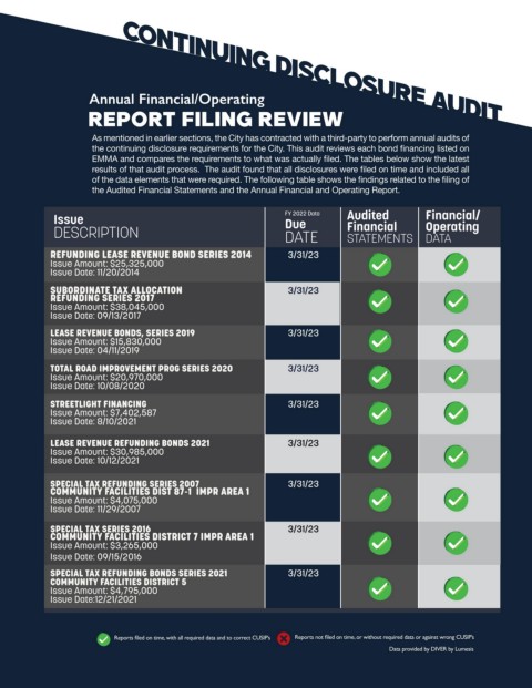 the continuing disclosure requirements for the City. This audit reviews each bond financing listed on