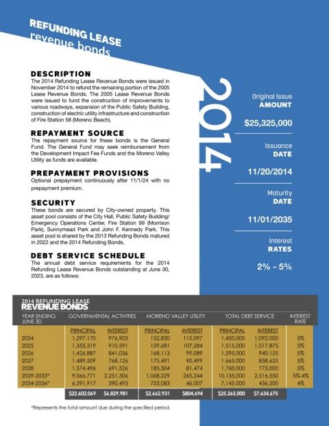 The 2014 Refunding Lease Revenue Bonds were issued in