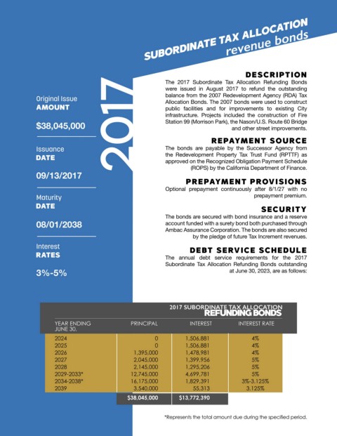 The 2017 Subordinate Tax Allocation Refunding Bonds