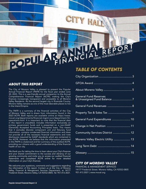 Page 2 - 2023 Moreno Valley Popular Annual Financial Report